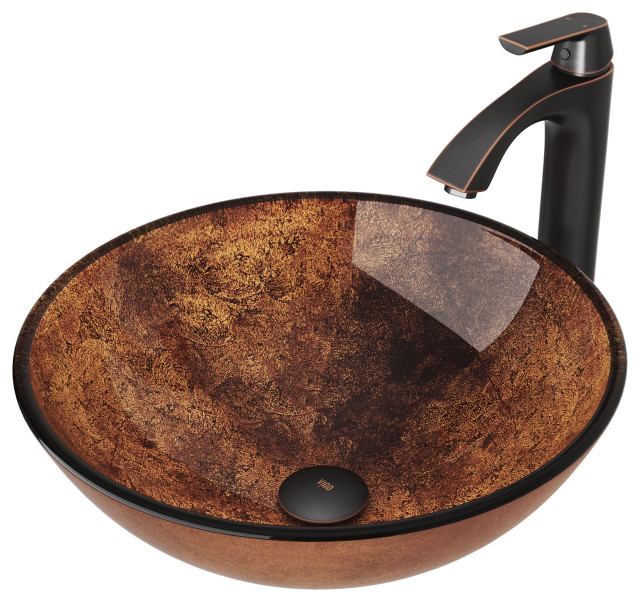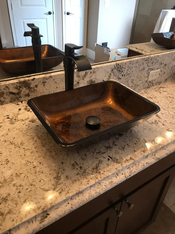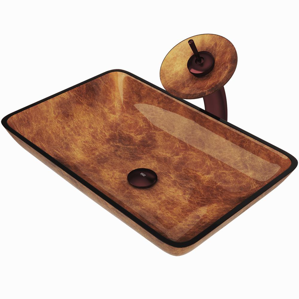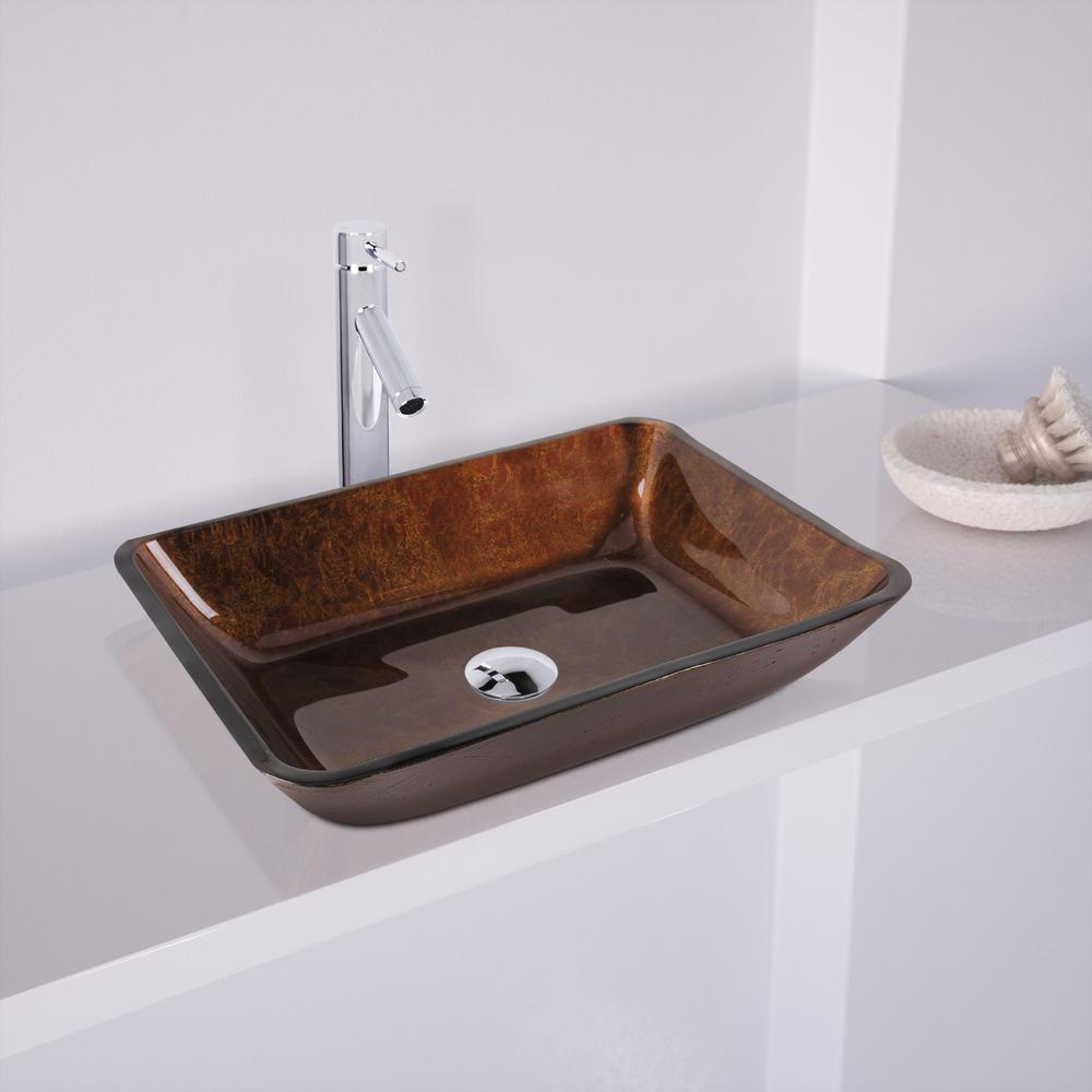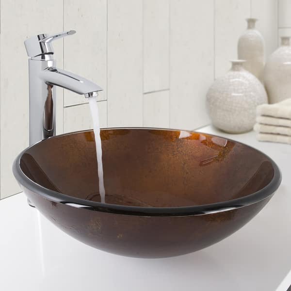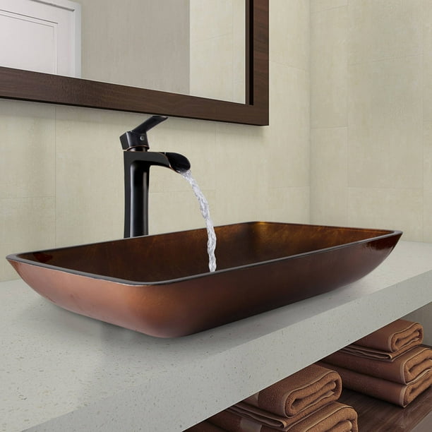 See our disclaimer. The Vigo Glass Vessel Bathroom Sink, Russet features the perfectly combined colors of brown and orange to provide an exciting I purchase the simply silver glass vessel sink and Niko waterfall faucet for a small en-suite bathroom. As soon as the packages arrived I knew this was a... Vigo Walnut Shell Brown Tempered Glass Above Counter Vessel Sink. 816686012110. Amber Sunset Multicolor Vessel Sink with Brushed Nickel Faucet. Rectangular Copper Vessel Sink and Fountain Faucet. 813775011115. Russet Waterfall Glass Sink and Faucet Set. Glass Bathroom Vessel Sinks. Looking for a unique vessel sink but don't want to